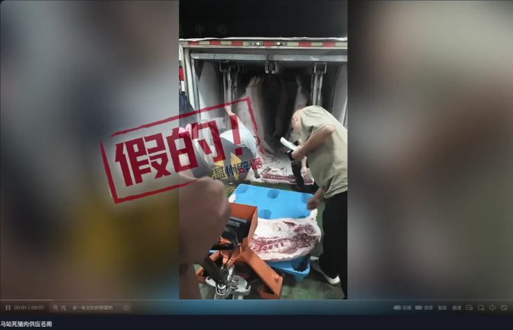 经温州辟谣侠向苍南县市场监督管理局核实,该视频为网络视频拼接而成,内容失实,苍南县马站镇并未发生死猪肉供应市场的情况。