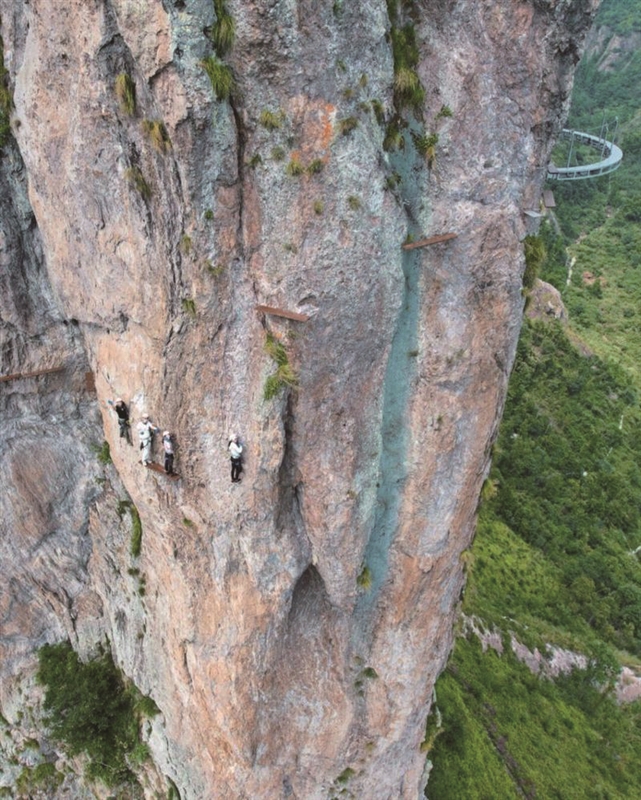 飞拉达,即岩壁探险,在保留野外攀岩刺激感的同时,大幅降低了技术门槛。雁荡山飞拉达坐落于乐清市沓屏峰,凭借险峻山势,被誉为国内最刺激、难度最高的飞拉达线路之一。其线路分为三种:A线为400米挑战线,垂直落差达100米,适合追求刺激的游客;B线为900米观光线,沿途设有钢索桥与木吊桥,可饱览雁荡绝景;C线为70米体验线,适合新手入门。完成A、B两线的游客还将获颁“飞拉达勇士”奖杯。