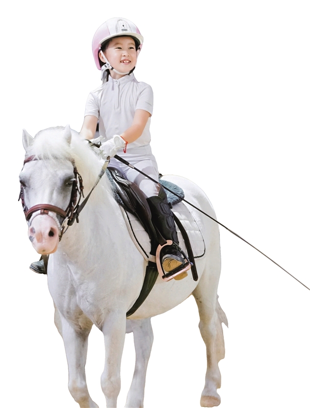 子汐两岁时,俱乐部正式开业,马术启蒙在潜移默化中进行。在幼儿园的骑行运动会上,同学们是骑着自行车、滑板车去比赛,而子汐却带着自己的小马上场,一下成了赛场上的焦点。