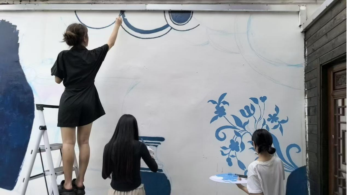 青年驻村队伍进行墙绘创作