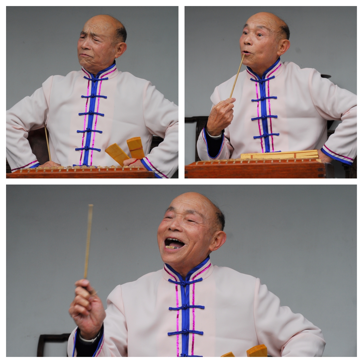 “上山/看看/桃花落,(琴声轻扬短快)桃花落噢/杏花红,风花/雪月/四时同(琴声轻扬短快),鸡鸣/犬里/皆一色,南北/腔调/不对同。(琴声短平快)”
