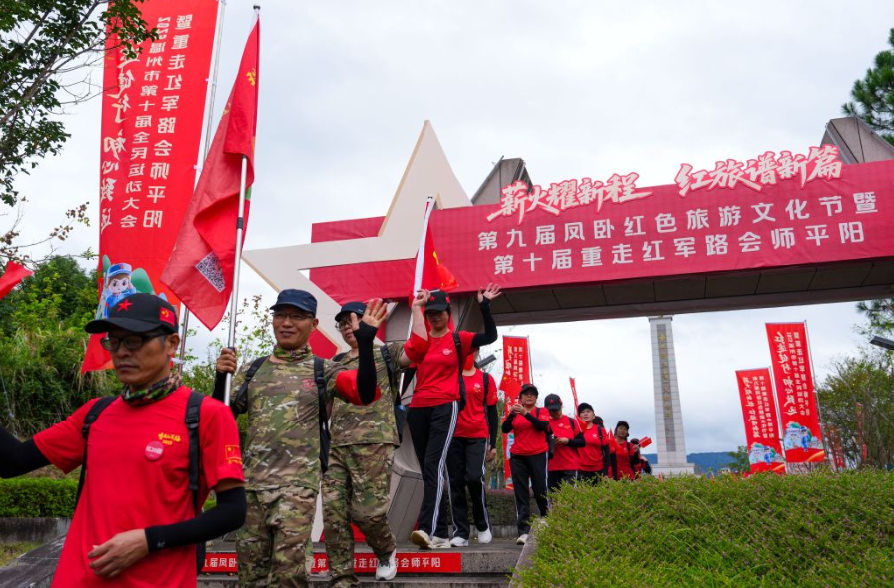 温州网讯 在平阳凤卧镇的青山翠谷间,近千名徒步者的脚步声,与八十多年前的红军足音形成历史的回响。10月19日,温州市第十届“重走红军路”活动在“浙南红都”成功会师,这场已持续十年的盛会,首次被清晰地勾勒为一条融合了体育精神、红色旅游与共富路径的立体纽带。