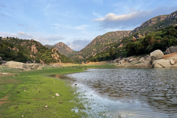 至盘垟村,紧挨着天河水库的登山道上,密林中人来人往同样如身处闹市一般。每至秋日,大罗山几处天河水库水位下降,都会在水流入口处形成大片的天然草坪奇观,吸引一波又一波的人来打卡拍照。
