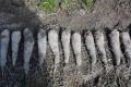 在渡渎村的糯米山药种植基地里,农户正小心翼翼地挖着泥土下的糯米山药。
