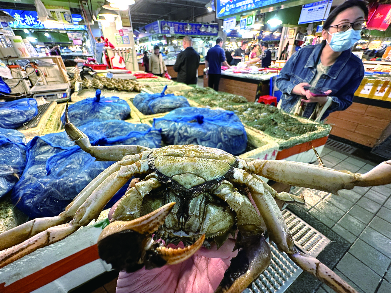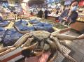 昨日,市区大南门农贸市场内一卖大闸蟹的老板一边挑选大闸蟹,一边向市民讲解挑蟹技巧。入秋后的大闸蟹膏满黄肥,上市数量充足,价格有所回落。因为今年降温较迟,大闸蟹上市时价格比往年偏高。据悉,现在市场上的大闸蟹多来自江苏,后期将会有湖北等地的大闸蟹进入市场。蒋文广 摄