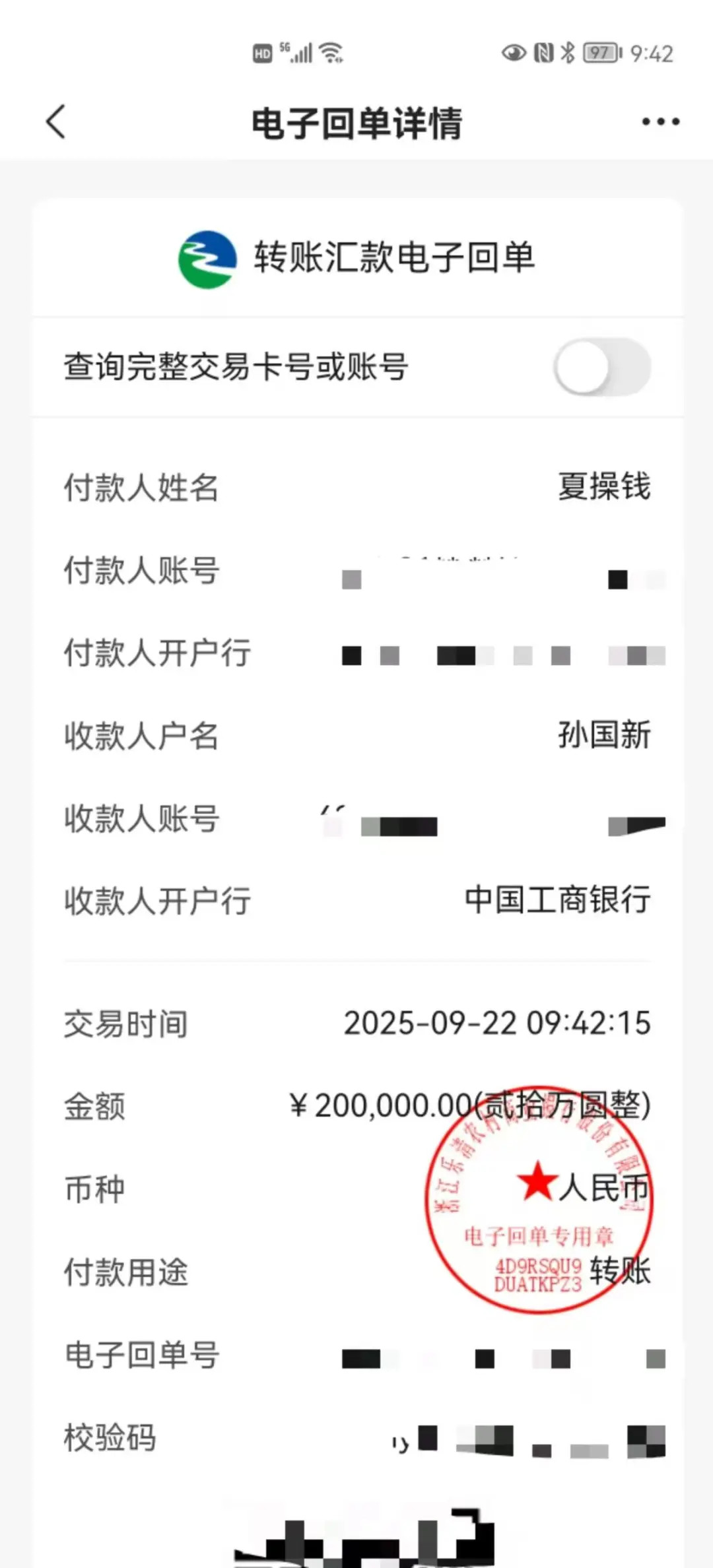 当年10月16日,老夏将20万元分两笔汇出。债清了,他的心也轻了。
