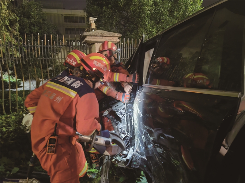温州网讯 昨天凌晨2时许,龙湾区永兴街道滨海一路6道交叉口高架桥发生一起车祸,有人员被困。辖区消防力量接警后立即赶赴现场救援。