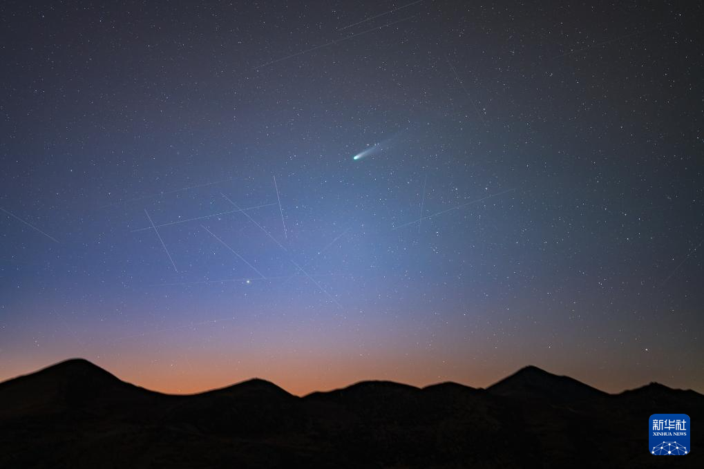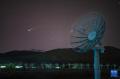这是10月20日在四川省稻城县子午工程二期圆环阵太阳射电成像望远镜前拍摄的莱蒙彗星。