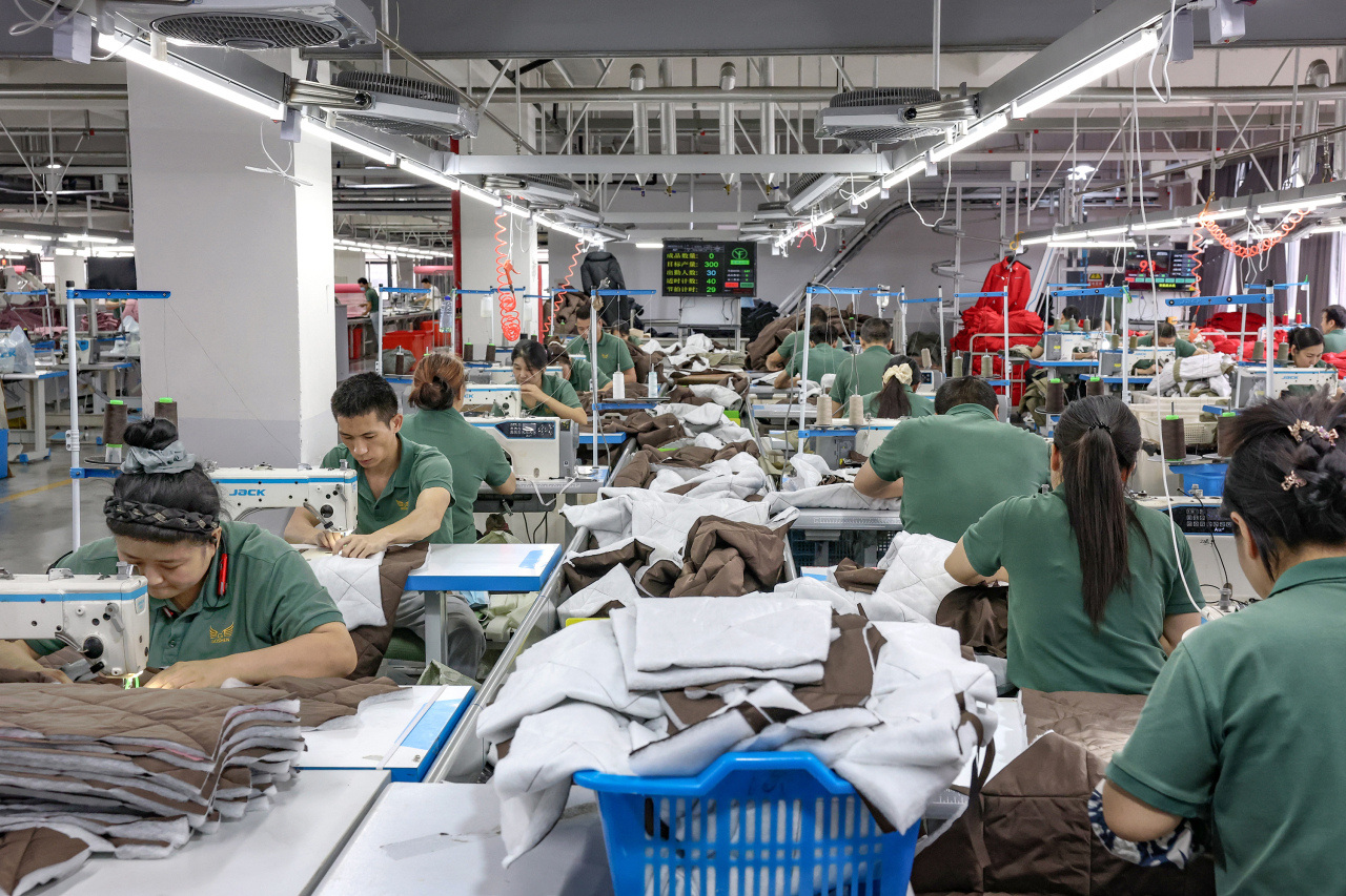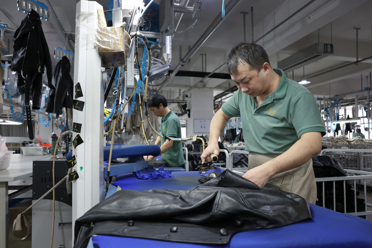 气温持续走低,催热了秋冬服饰消费市场。10月23日,位于瓯海时尚智造小镇的温州歌姗服饰有限公司生产车间内,一派热火朝天的繁忙景象:缝纫机声此起彼伏,300余名工人紧张有序地赶制订单,8条成型流水线马力全开,一件件秋冬成衣源源不断下线,发往欧美等海外市场。