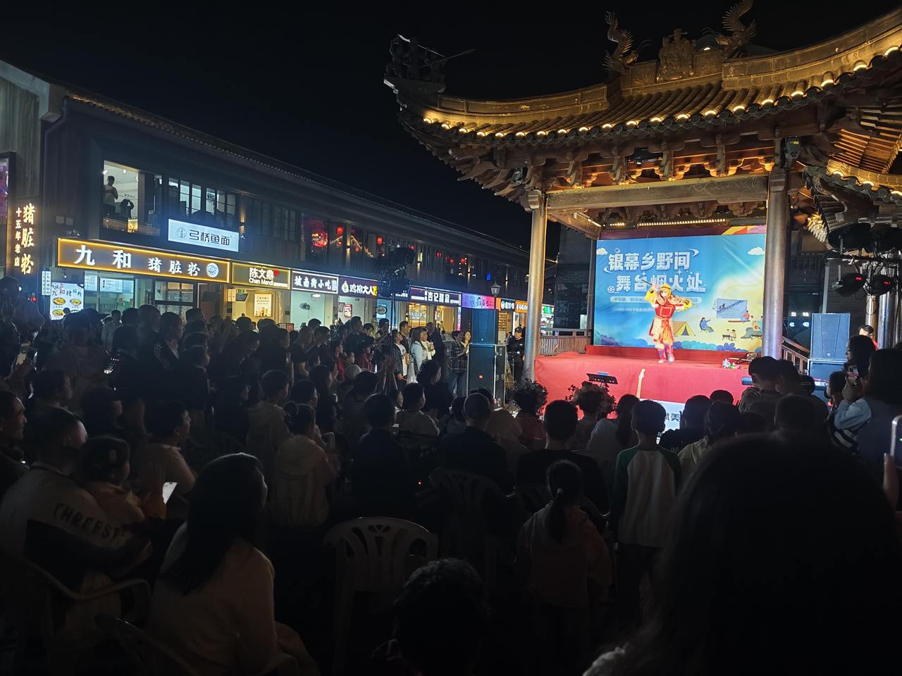 从文化礼堂到廊桥溪畔,从休闲广场到民俗戏台,一个个特色鲜明的放映场景内,一场场集观赏性、趣味性和互动性为一体的精彩演绎轮番上演,刷新着百姓对“公益电影”的认知。“这样的活动多少场都不嫌多!”10月25日晚,当《我的未来不是梦》的音乐响彻坡南老街时,凤凰里广场上,已经聚集了数百位村民和游客,他们和乐队一起唱响这首耳熟能详的歌曲。随着节目的推进,现场欢呼声、呐喊声不断,交织成欢乐的海洋,成为老街充满活力的风景线。“特地从鳌江过来,大大的惊喜!”市民詹女士表示,前几天得知当晚的演出后,便约了好朋友一起带孩子来老街逛吃的同时一睹为快。“原本以为就是‘露天电影’,没想到这么潮这么精彩。以后来坡南的理由又多了一个。”