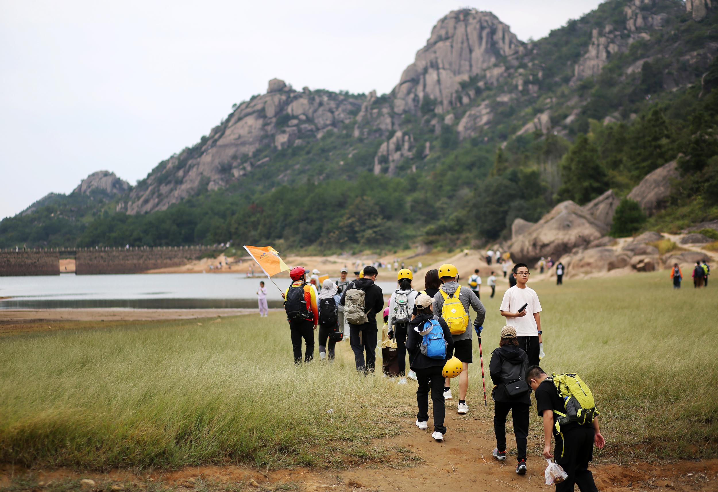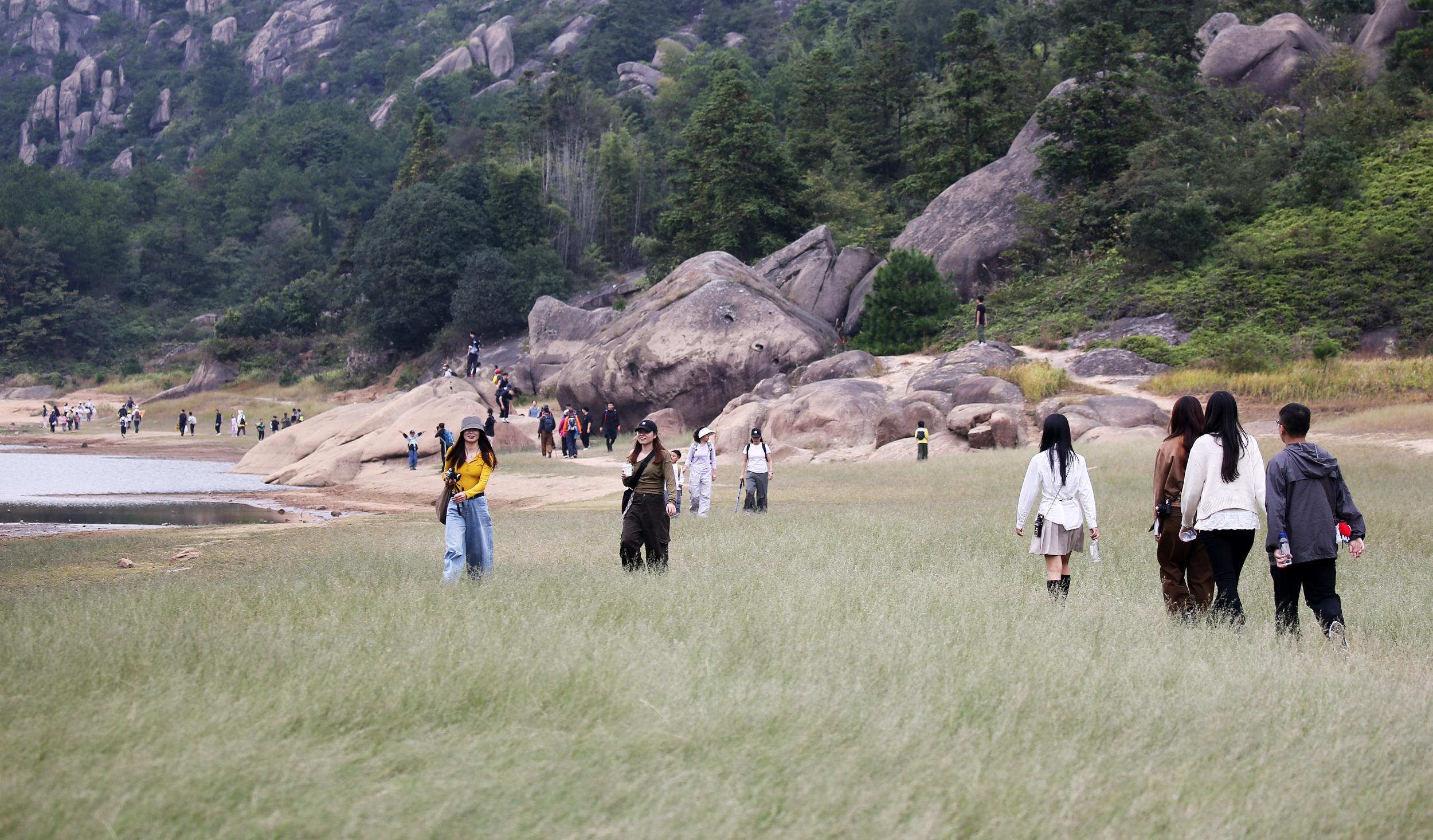 温州网讯 10月26日,在大罗山上,从秀垟水库到天河西水库的沿途,充满了秋日登山的市民。随着秋季来临,大罗山上各大水库的水位都普遍降低,许多在春夏多雨季曾被淹没于水中的道路如今已非常适宜徒步穿越。