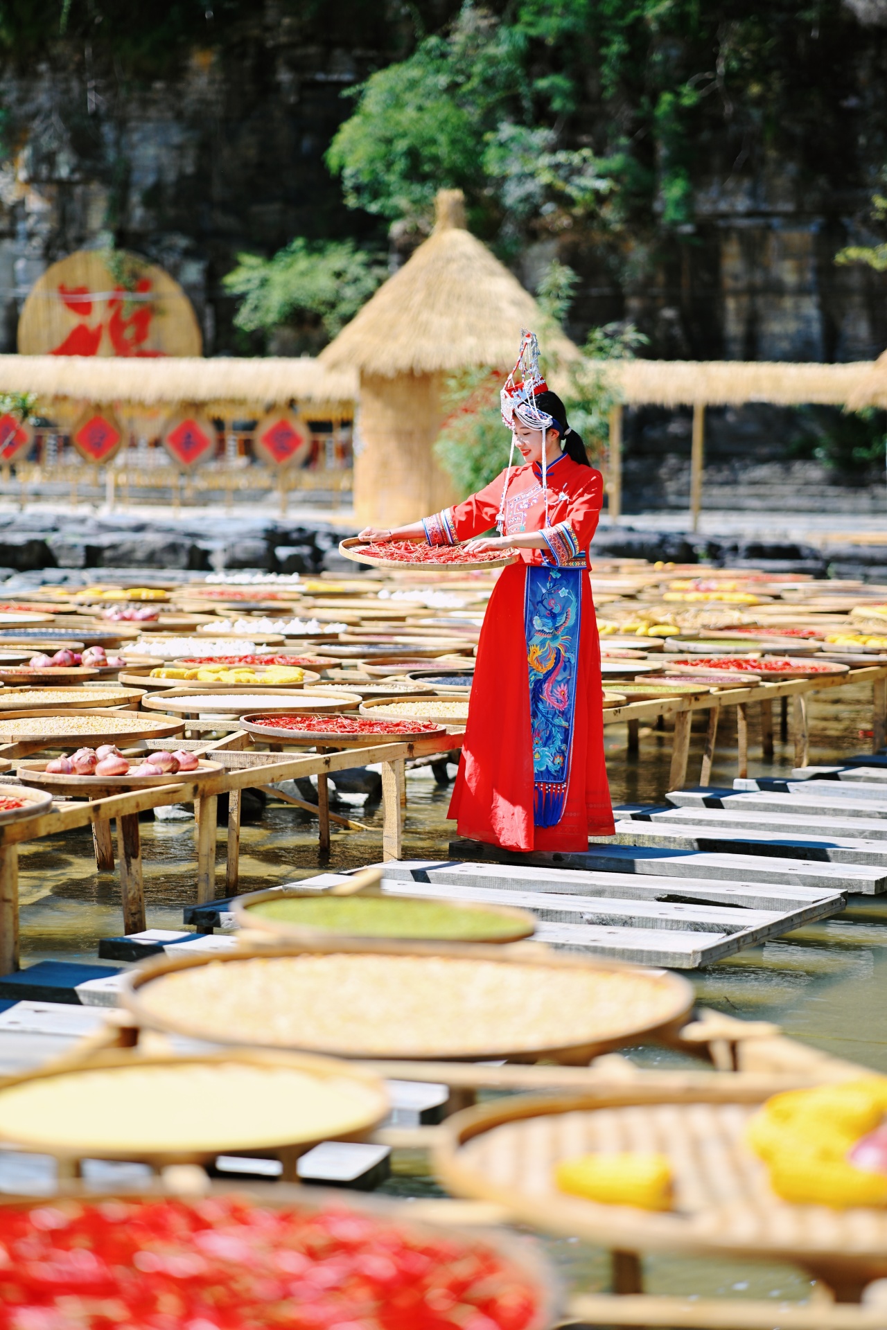 据悉,目前泰顺南浦溪景区的“山水晒秋节”已启动,工作人员及村民将收获的稻谷、辣椒、玉米、南瓜、柿子、番薯等色彩斑斓的农作物,晾晒在龙尾滩景点,描绘出一幅占地五万平方米的丰收画卷。