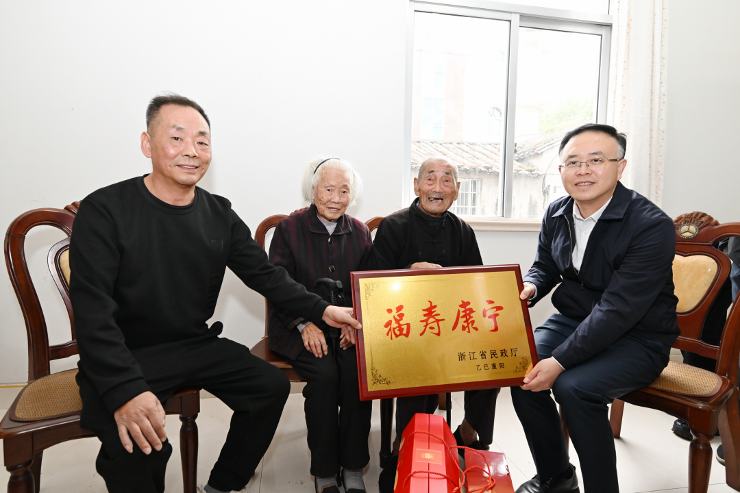 乐清市政协主席陈向东一行先后来到雁荡镇站前社区、城南街道石马社区,走访慰问百岁老人阮毓贤、王美花,向他们致以诚挚的节日祝福,并送上“福寿康宁”牌匾,让敬老温情在秋日里传递。