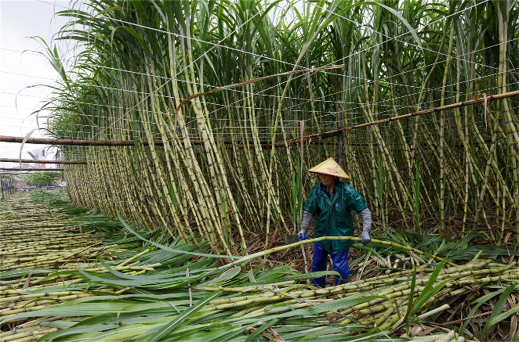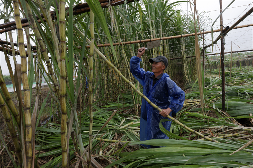 连日来,瑞安陶山的4000多亩甘蔗陆续收割上市。摄影: 郑鹏
