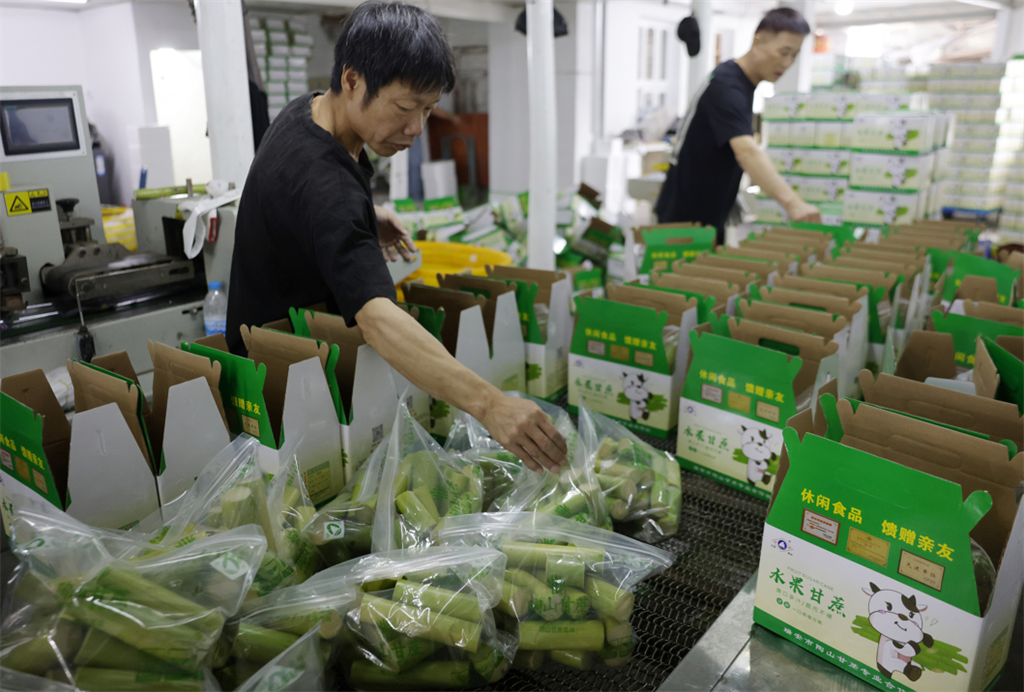 在这里经过清洗、切段、吹干、包装等一系列标准化处理后打包发货,第一时间发给全国各地的客户,实现收割当天“现摘现售”。摄影: 郑鹏