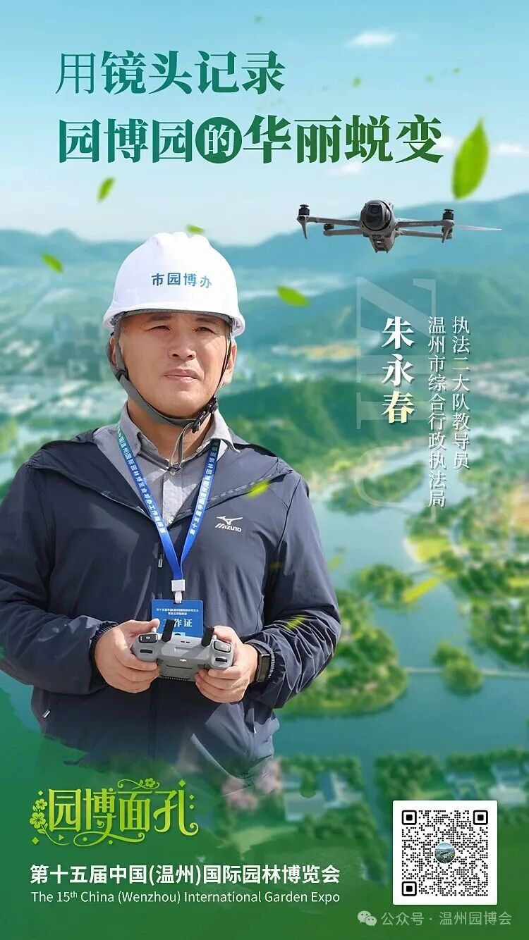 “每一滴汗水都在浇灌绿色梦想,每一个镜头都在见证城市成长。”朱永春用自己的行动诠释着奉献与担当,默默记录下温州园博会的精彩篇章。