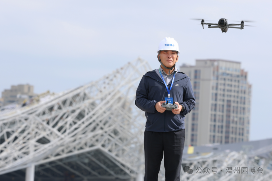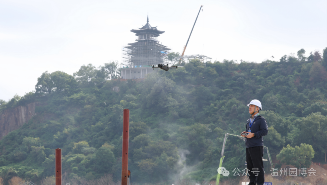 秋日的清晨,温州园博园被一层薄如轻纱的雾气轻柔笼罩,宛如一幅意境悠远的水墨画。此时,朱永春已扛着无人机,来到园博园在建工地,熟练地操作无人机起飞。这个固定机位,他坚守了数月,如同一位忠诚的守护者,静静见证着园博园的“成长”。
