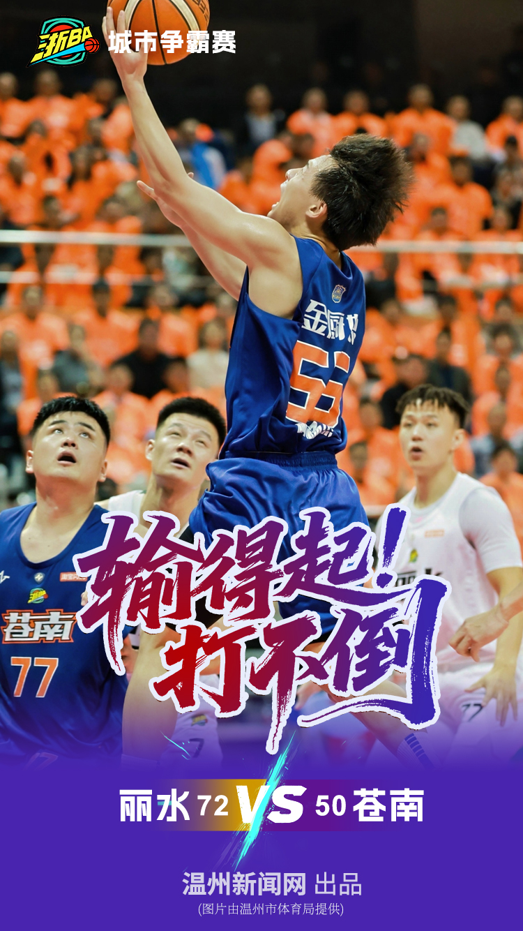 温州网(记者 温婉)10月30日晚,浙BA城市争霸赛在丽水市体育中心体育馆打响。客场作战的苍南队与丽水队展开精彩对攻,但最终未能扭转局势,以50:72憾负对手。