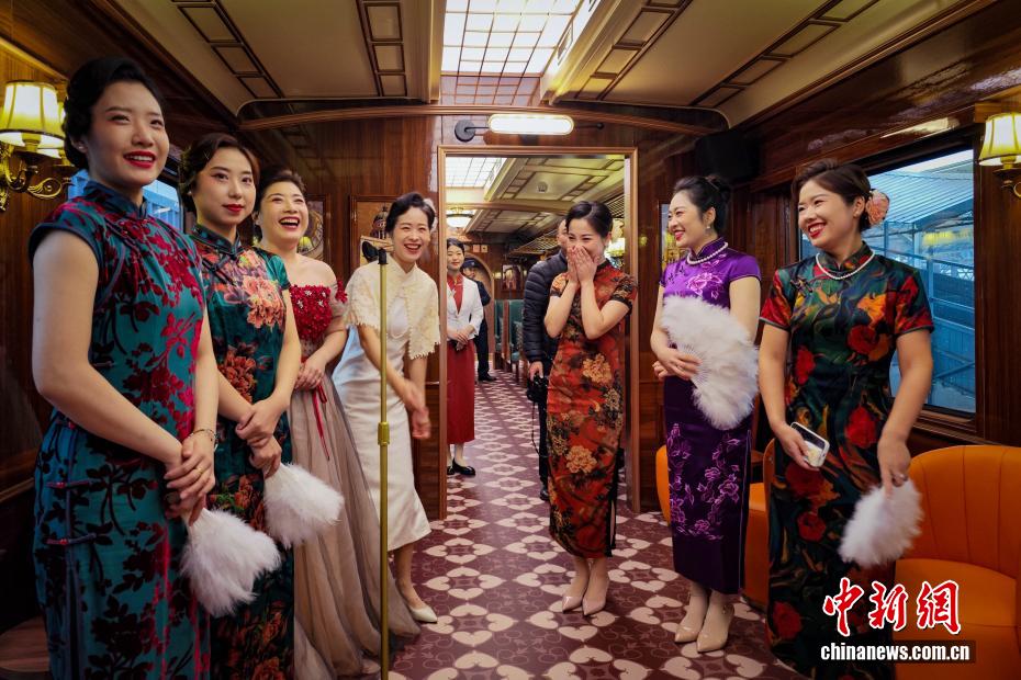 10月30日,天津,游客在天津北站站台准备上车。当日,中国首列主题娱乐沉浸式文旅专列“津旅时光号”在天津北站鸣笛启程。班列每周五、六、日开行,每日两班往返于天津北站与蓟州北站,全列共10节车厢,设置了复古客座车厢、蒙太奇幻境互动演艺车厢、珍奇花园俱乐部车厢、沉浸式时空穿梭机车厢等不同主题,让游客感受沉浸式互动体验。