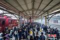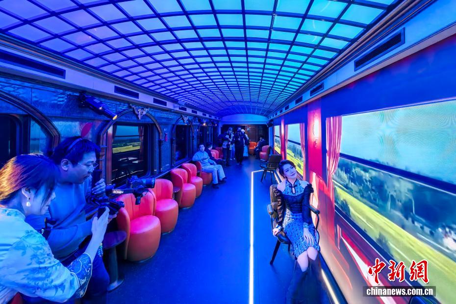 10月30日,天津,游客在天津北站站台准备上车。当日,中国首列主题娱乐沉浸式文旅专列“津旅时光号”在天津北站鸣笛启程。班列每周五、六、日开行,每日两班往返于天津北站与蓟州北站,全列共10节车厢,设置了复古客座车厢、蒙太奇幻境互动演艺车厢、珍奇花园俱乐部车厢、沉浸式时空穿梭机车厢等不同主题,让游客感受沉浸式互动体验。中新社记者 佟郁 摄