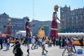这是10月31日在墨西哥首都墨西哥城的宪法广场外拍摄的亡灵节装饰。