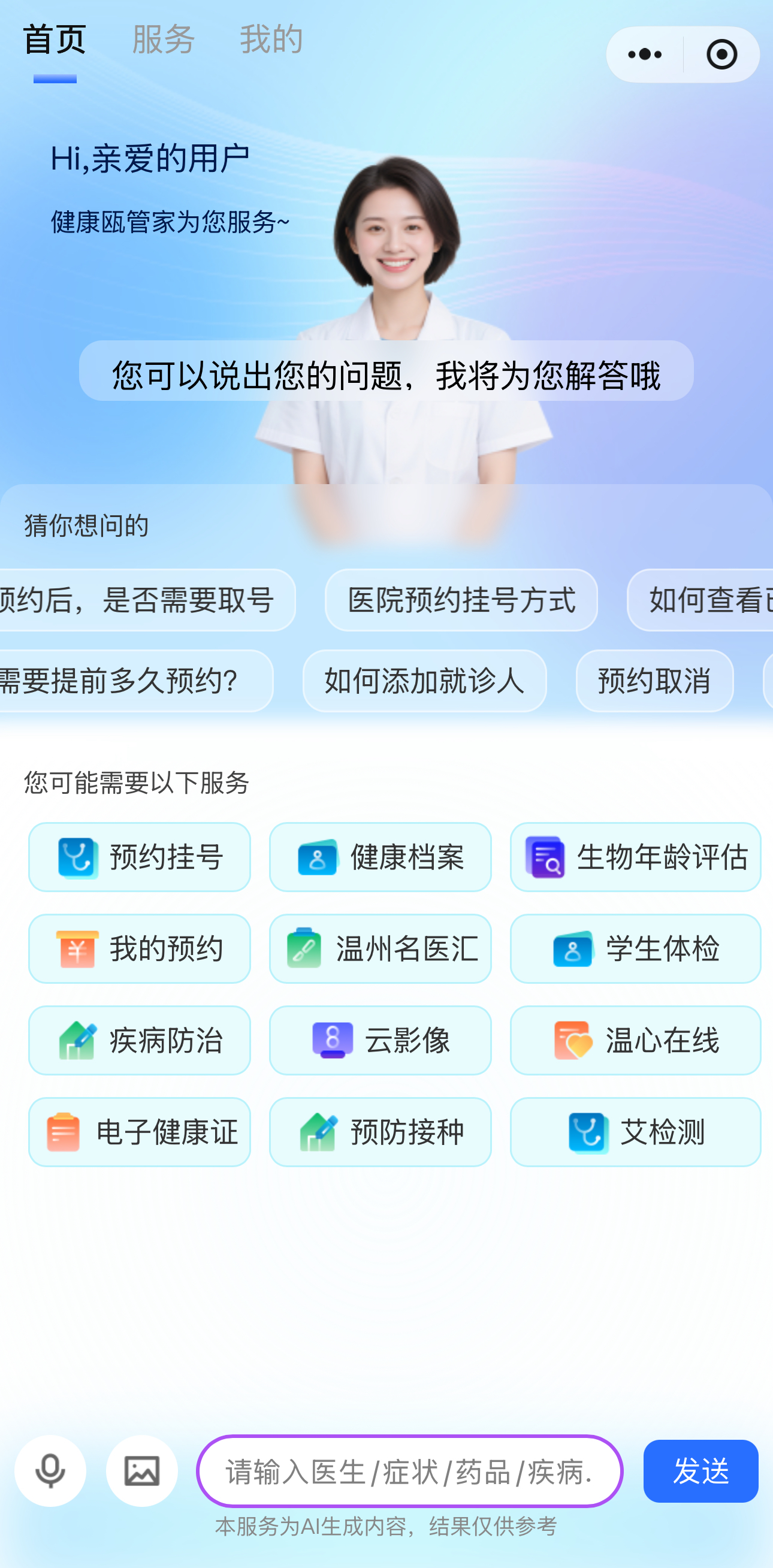 同时,医疗服务便捷性大幅优化。“健康瓯管家”提供“7×24小时不打烊”的健康咨询服务,用户通过文字或语音提问,系统快速给出专业解答。“健康瓯管家”会基于用户画像提供延伸服务,例如,针对家长用户,在流感季节主动推送“儿童流感疫苗接种提醒”,并附带附近接种点的预约链接;为孕产妇推送“产检时间+孕期营养指导”,为老年人简化操作界面,为慢病患者推送用药提醒。