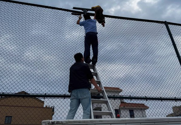 警情就是命令,值班民警薛智锋立即带队赶往现场。赶到现场时,眼前的情景让民警心头一紧。一名小男孩趴在离地约6米高的足球场防护网上,已近10分钟,小小的身体紧贴着网格,但因为害怕和体力消失殆尽,孩子已在不住地颤抖。
