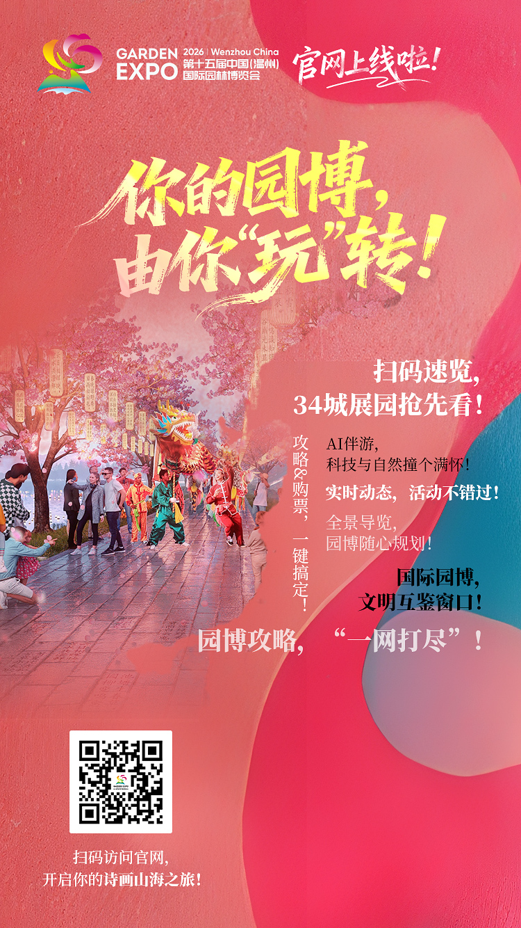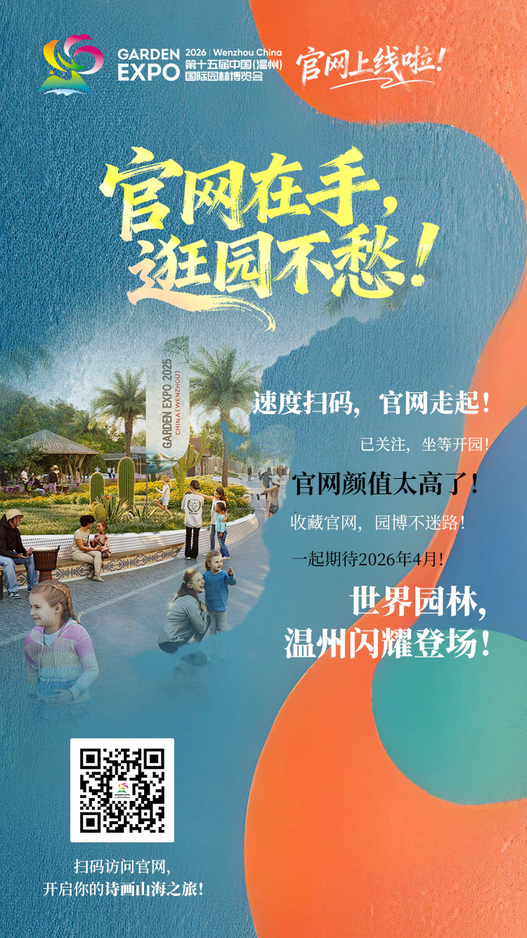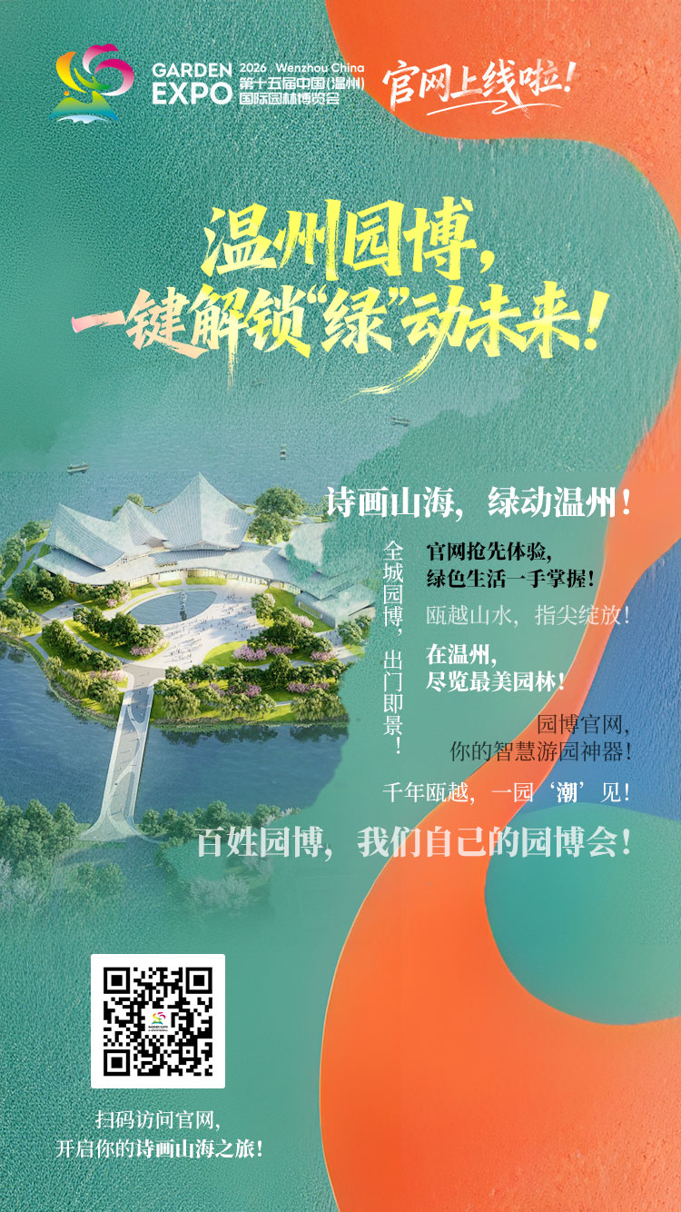 第十五届中国(温州)国际园林博览会官方网站(www.wzyby.cn)正式亮相,以“诗画山海·共享绿色生活”为魂,深度融合AI智慧服务与实用功能,让全球用户足不出户就能领略园博魅力。
