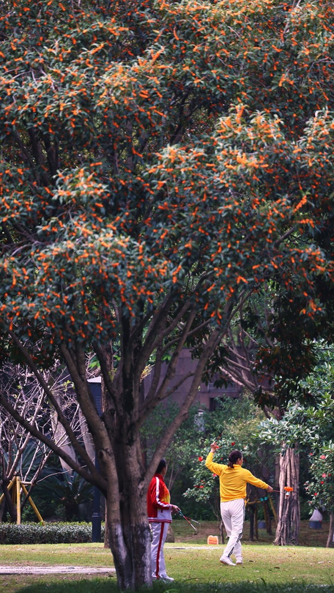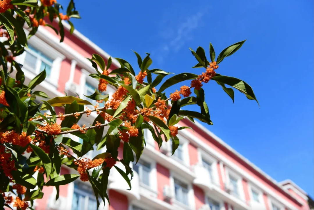 丹桂金蕊流光,幽香漫卷。秋风过处,簇簇金黄掩映着菁菁校园,为书香岁月添上一抹清甜温暖的底色,悄然滋养着莘莘学子的求学时光。