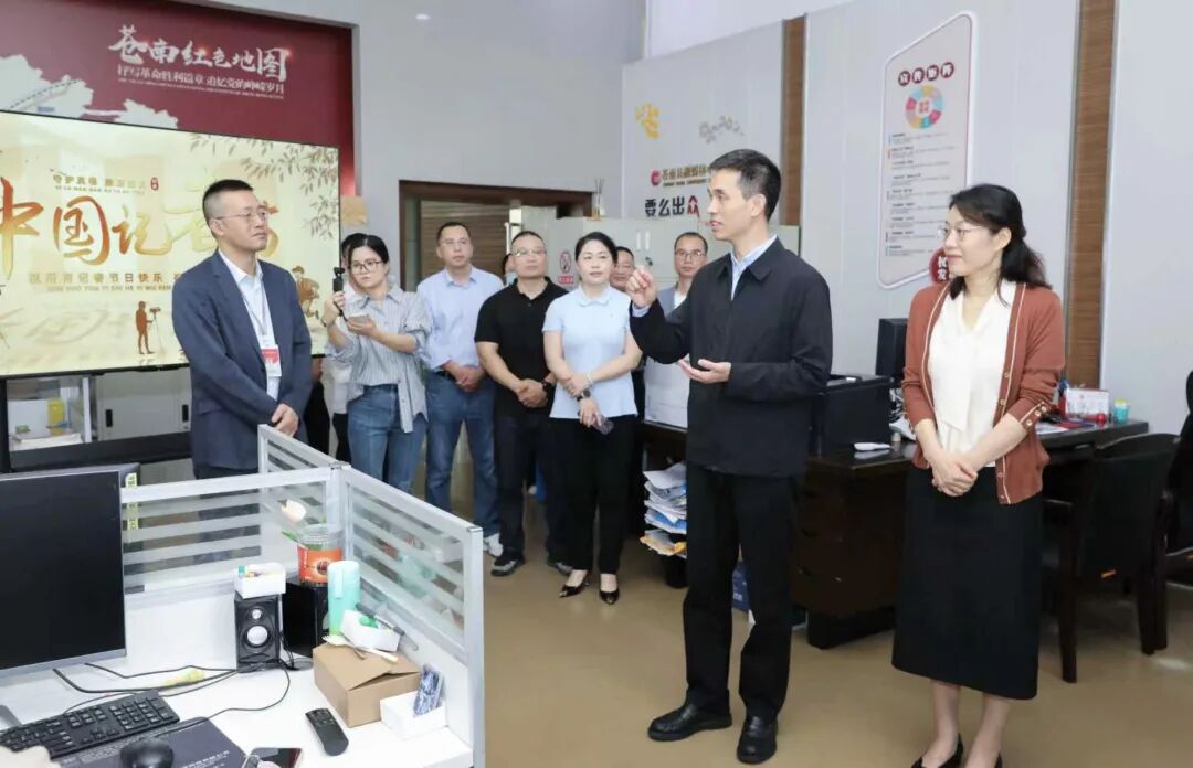随后,张本锋认真听取了县融媒体中心在平台宣传、联动运营、安全刊播等方面的工作汇报,对中心取得的各项成绩给予肯定。他指出,今年以来,县融媒体中心全员发力、锐意进取,发展成效通过扎实数据得到充分体现,整体面貌焕然一新。“浙BA”宣传时效快、传播广,充分展现了融合传播水平。张本锋勉励广大新闻工作者要继续围绕中心、服务大局,牢牢把握正确舆论导向,切实履行好党的新闻舆论职责使命;要持续深入基层、贴近群众,不断增强新闻宣传的吸引力、感染力,通过多方位、多角度、多形式的赛事宣传报道,提升群众荣誉感和自豪感,进一步增强城市凝聚力;要勇于创新突破,加强学习锻炼,不断提升业务能力和实战能力,切实增强在融媒体时代的核心竞争力。此外,要深化运营拓展,充分发挥媒体资源优势,探索多样化合作模式,推动业务合作从“拉业务”向“接业务”“选业务”转变,全力推动融媒体中心建设再上新台阶。