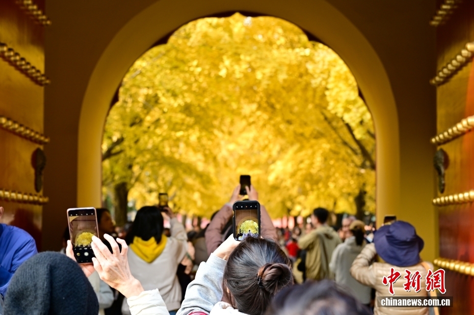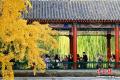 11月8日,北京天气晴好,中山公园银杏金黄吸引游客前往游览、拍照。中新社记者 田雨昊 摄
