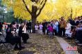 11月8日,北京民族乐团乐手在中山公园银杏大道演奏民乐吸引游客。当日,北京天气晴好,中山公园银杏金黄吸引游客前往游览、拍照。