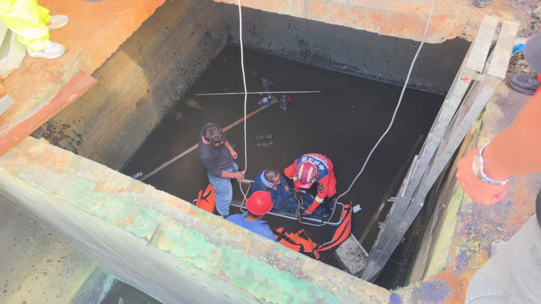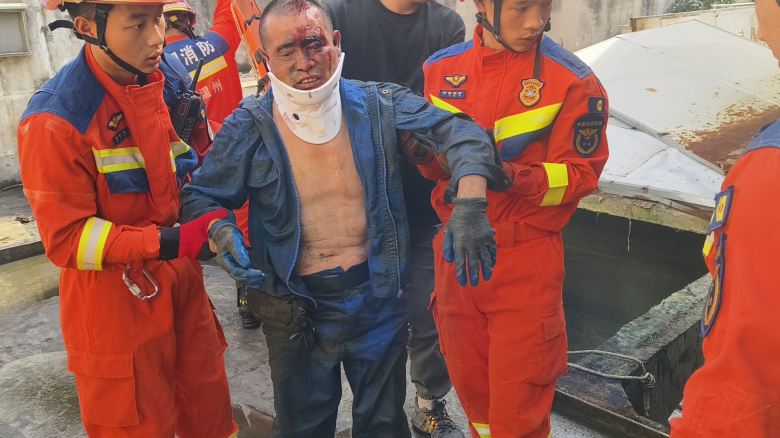 一名工人坠入污水处理池内命悬一线 一场惊心动魄救援随即展开