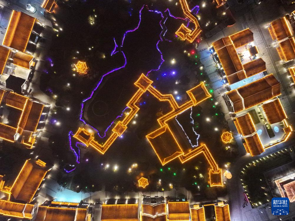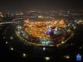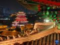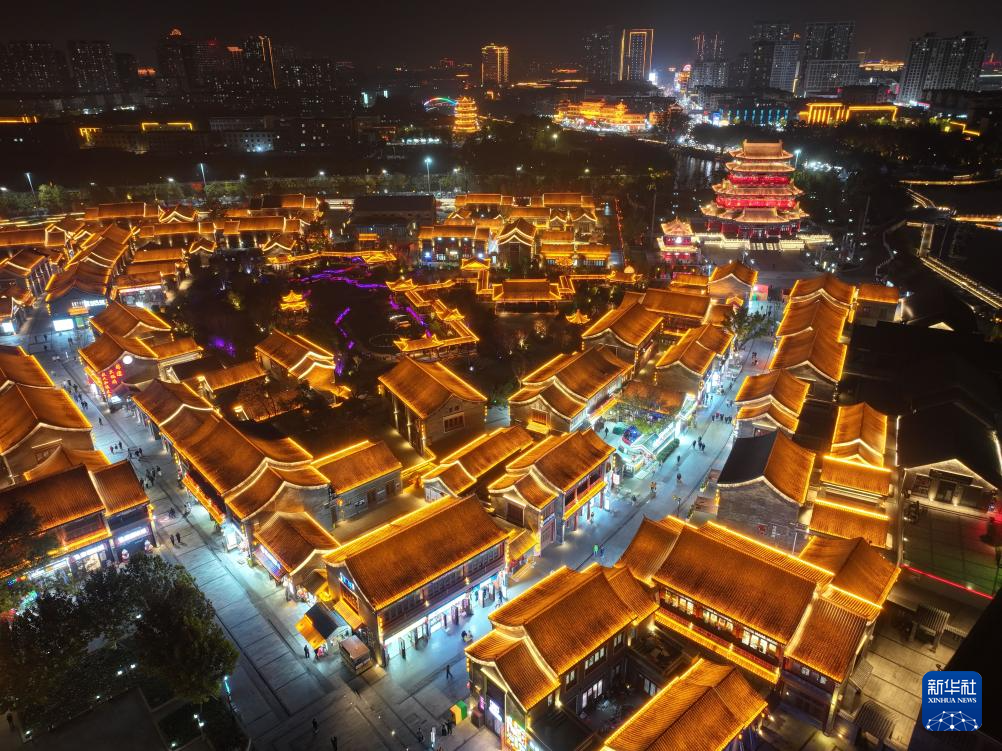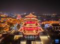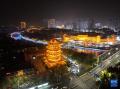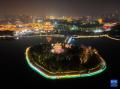 京杭大运河沧州段沿线建筑灯光璀璨(11月11日摄,无人机照片)。