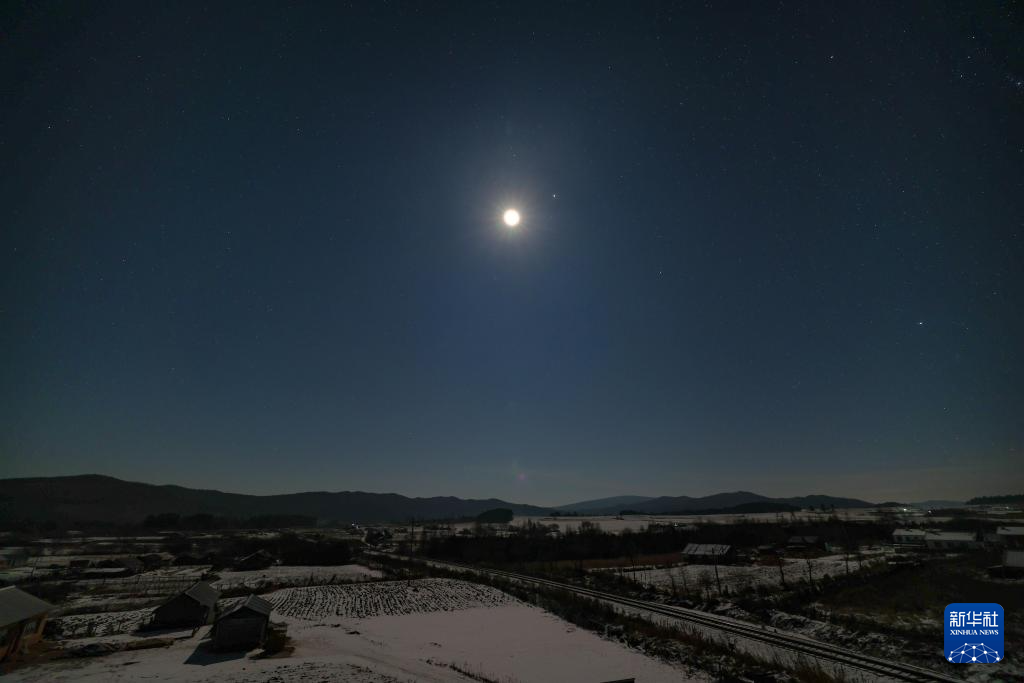 11月10日在黑龙江省双鸭山市拍摄的“双星伴月”。