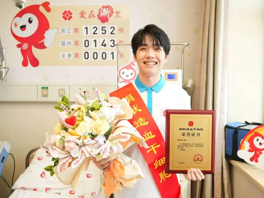 这场“百日接力赛”于8月底开始。从温医大毕业、即将踏入浙江大学医学院深造的倪志豪成为了龙港市首例造血干细胞捐献者。五年前,正在读大一的倪志豪在一次献血中主动留样,登记成为中华骨髓库志愿者,并四次无偿献血,累计1000毫升。“能挽救一个生命甚至一个家庭,我感到无比幸运。”倪志豪的平静与坚定,为这场接力赛跑出了第一棒。
