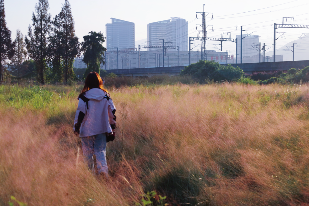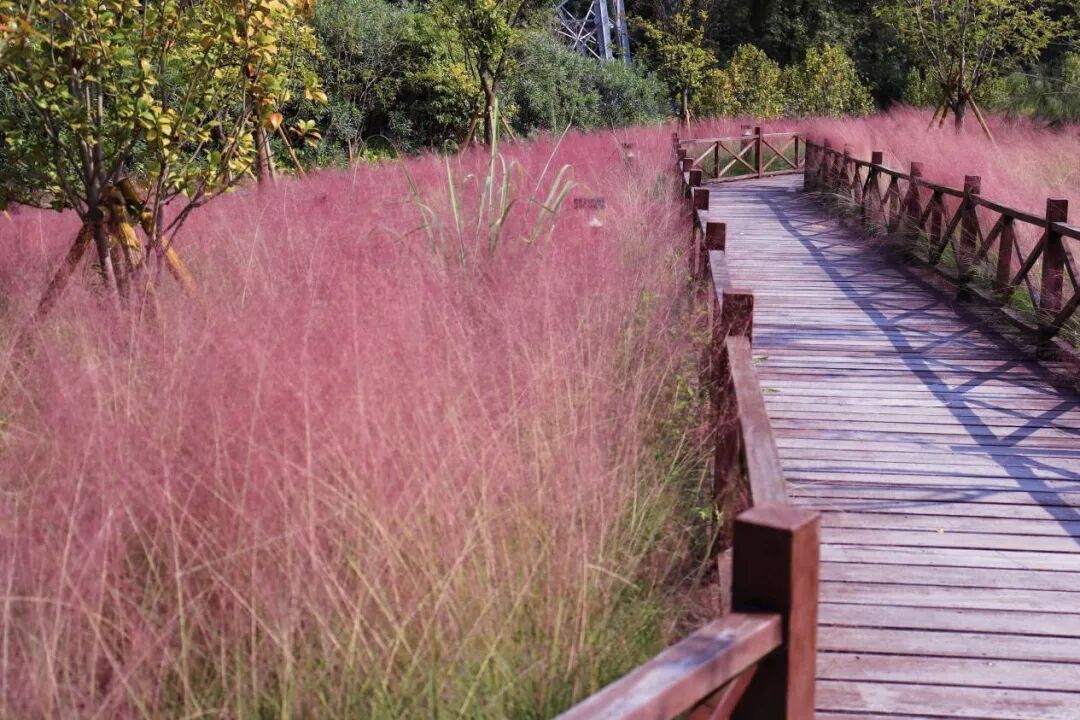 粉紫色花穗如云似雾,为城市增添浪漫秋景,吸引游客观赏打卡。