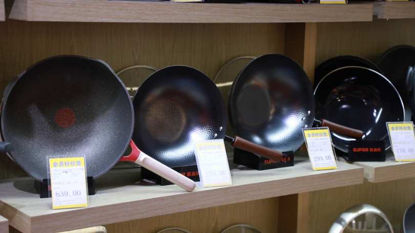 记者在瑞安市区一家超市的锅具货架前看到,各类材质的锅具整齐排列。超市导购员陈晓琴介绍,“传家锅”走红后,咨询不锈钢锅的顾客明显增多。“以前年轻人买锅,首先看重颜值和是否容易清洗,现在不少人会主动询问材质厚度、不粘性和耐用性。”此外,无涂层、轻便的锅具更受大家青睐。陈晓琴解释,顾客担心有涂层的锅具在长时间使用过程中,锅铲会破坏涂层,进而影响食用安全。