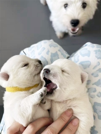 在诚惶诚恐与无比期待中,她成功迎接了4个小生命的降临。“那一刻,我真的感叹于生命的神奇。”刘琳说,更让她觉得动容的是Lili母性的本能,“它像是天生会做妈妈似的,对孩子温柔体贴,无微不至。”如今,这4只幼犬在刘琳和Lili的共同照顾下,正健康快乐地成长。