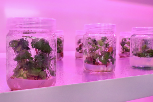 在温州科技职业学院浙南育种重点实验室内,身着白大褂的实验人员正俯身操作台,小心地从玻璃瓶中取出一株草莓种苗。“这些无病毒幼苗就是我们培育体系的‘母种’。”项目技术人员金浩楠手托透明培养基介绍,“它们茎秆纤细,尚不能结果,需转入诱导培养基扩繁为健壮的‘原种’。”