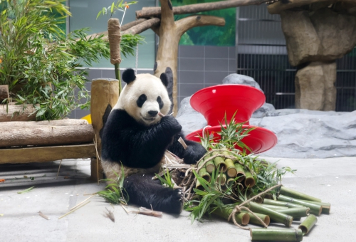 “每天早上8点半大熊猫外放,还有两个‘加餐’时间段,那时它们最活泼,堪称‘吃播’现场。”工作人员向记者介绍,“‘宝弟’(温州爱称:雁雁)‘宝妹’(温州爱称:楠楠)是今年6月7日来的,现在已经完全适应了温州的生活。在温度适宜的秋假,只要天气合适,它们就会在外场活动,游客们很容易看到它们悠哉啃竹、爬树、休息的萌态。