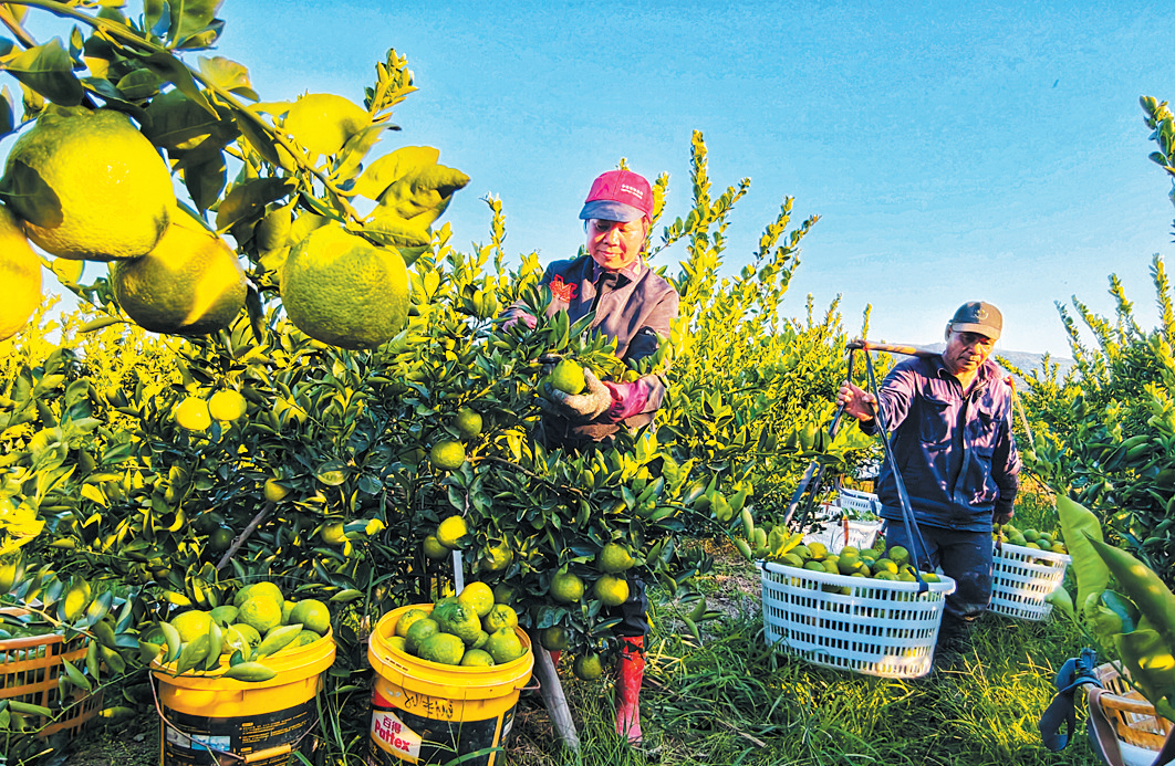 昨天,瓯海三垟湿地垟河村的瓯柑园里,张春良、黄玉飞夫妻承包的6亩瓯柑田正式开启采摘季,预计总产量可达3万斤,饱满的瓯柑已吸引不少老客户提前预订。常锋 文/摄