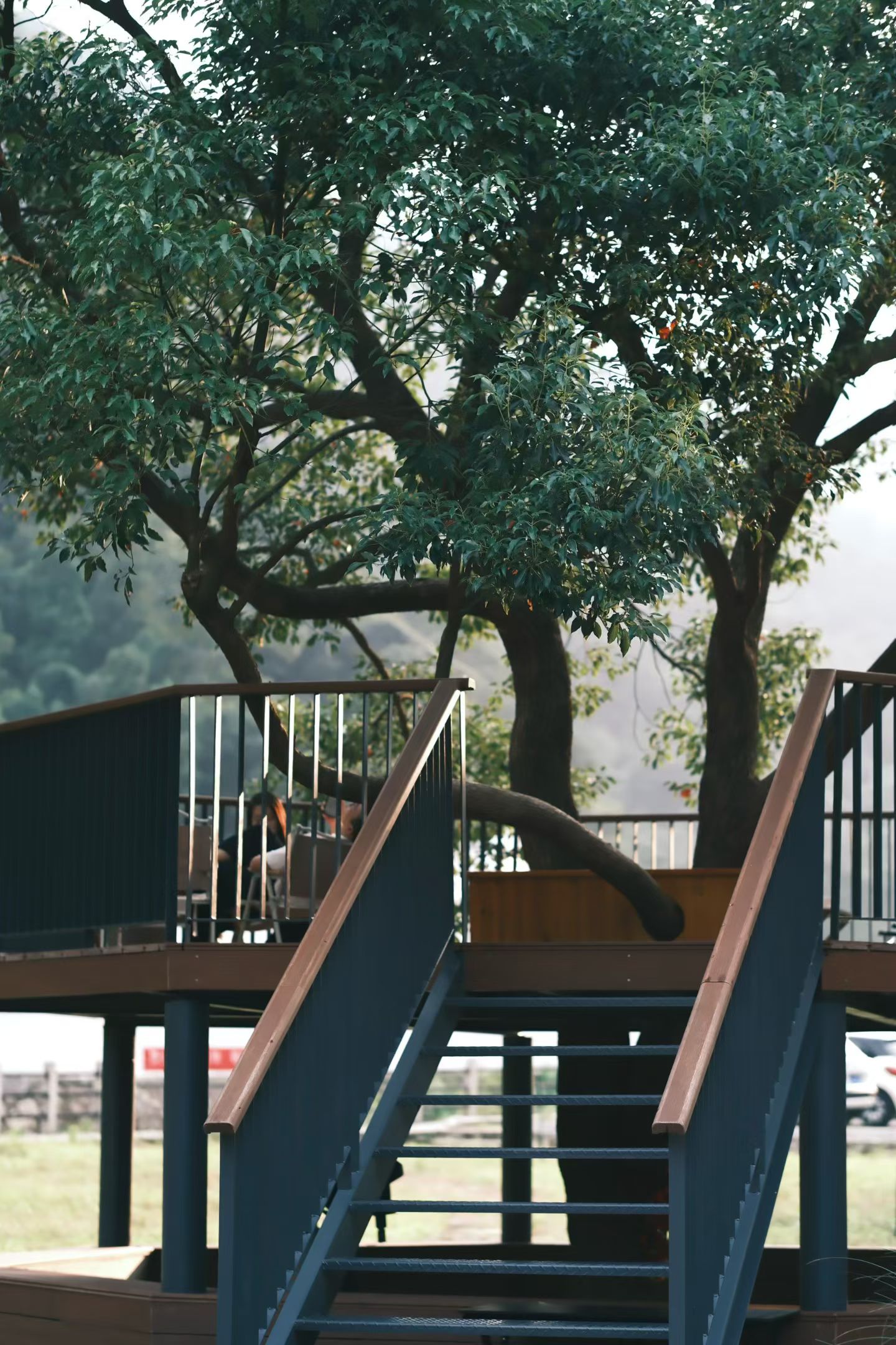 咖啡屋室内面积不大,主打简约风,亮点是外面近30亩的星宿花海、草坪景观,以及依托一棵树搭建起来的树荫平台,营造出随性自由的氛围——这满眼的绿意,让人心旷神怡, 抬眼望去,四周都是雁荡山核心区的奇秀山峦,耳边是虫鸣和着溪流织就天籁。