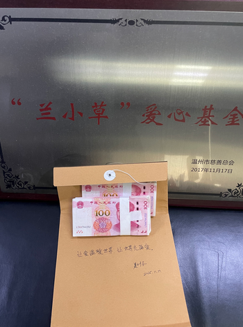 11月17日,连续9年践行“星雨心愿”之约的“美叶子”,趁午休专程送来“沉甸甸的爱”除2万元善款,“让爱温暖世界,让世界充满爱!”以匿名坚守诠释爱的传承,成为“兰小草”精神最坚定的接力者之一。