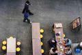 11月17日,一名男子在日本东京的一家咖啡店外休憩。