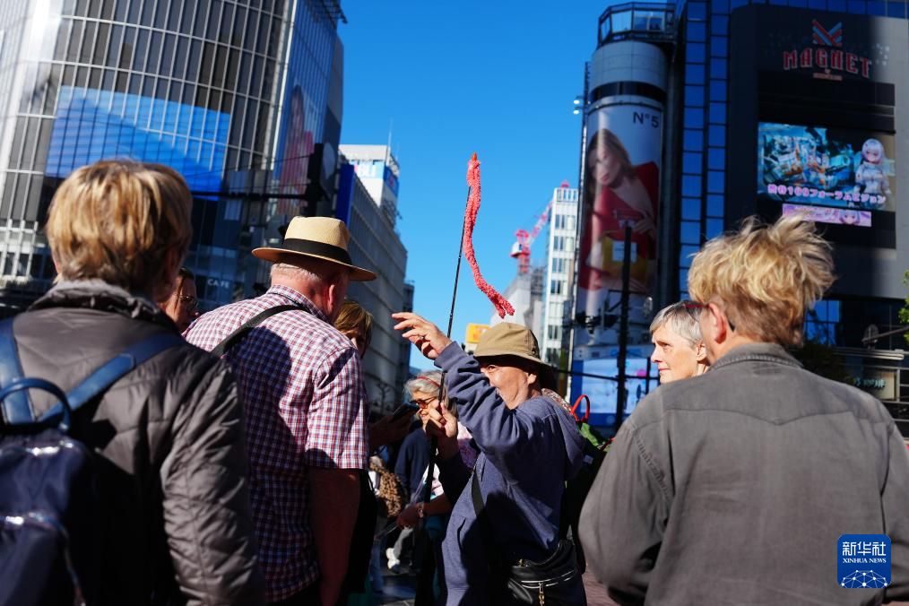 11月17日,游客在日本东京的涩谷站附近游览。