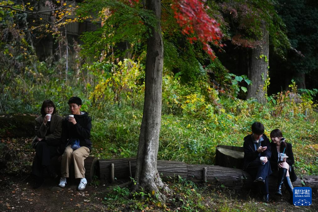 11月16日,游客在日本东京的一处公园内休憩。