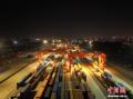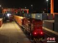 11月18日,河南郑州,一列满载机械设备、日用电器、服装、模具等货物的全程时刻表中欧班列从河南郑州发车驶向德国汉堡。这是全国首列直达德国汉堡的全程时刻表中欧班列。图为全程时刻表中欧班列。中新社发 魏金伟 摄