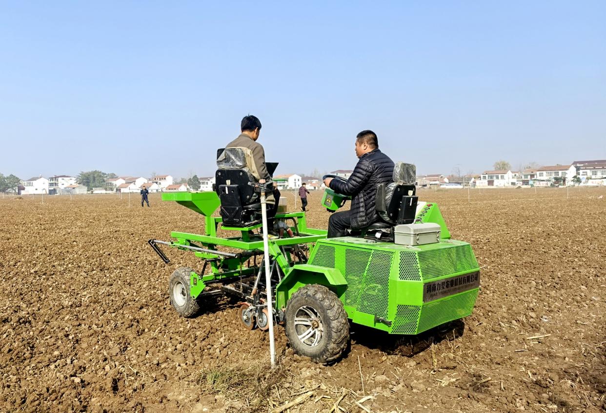 种植大户使用精播机在试验田播种冬小麦。(徐松 摄)
