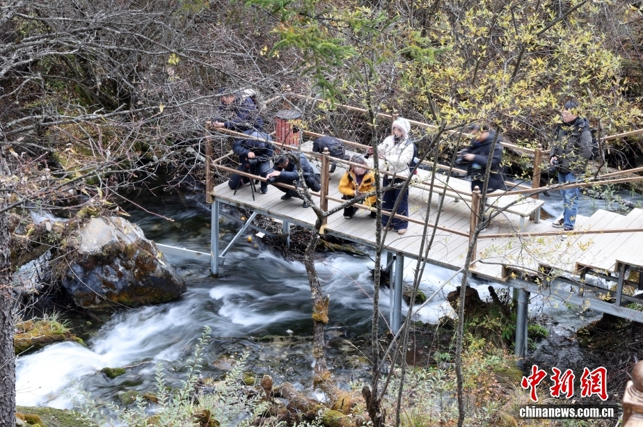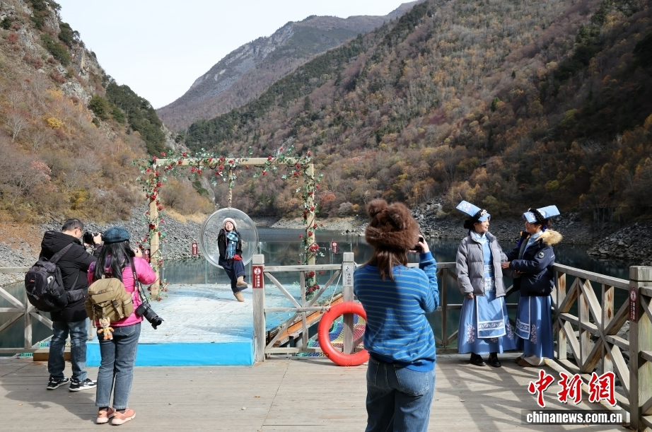 11月19日,初冬季节的四川省茂县松坪沟风景区景色如画,彩色山林与清澈的高山湖泊、溪流构成一幅幅美景,令游客流连忘返。中新社发 毛建军 摄